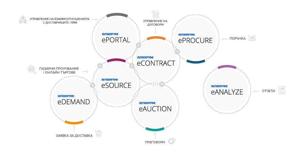 Спечелете предимство в преговорите с доставчиците си, и за изключително кратко време спестете 15% от бюджетните си разходи за покупки на стоки, проекти и услуги. Разработете процедурата на конкурентно наддаване въз основа на Вашите изисквания и ENTERSOFTONE ще предложи оптималния вид търг.